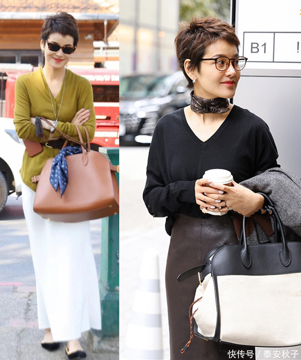 建议大家选择图案简约、色彩高级的丝巾的丝巾,直接系在脖颈间,再以小巧的耳环,撞色拼接的包包做点缀,更能彰显不俗的时尚品味。